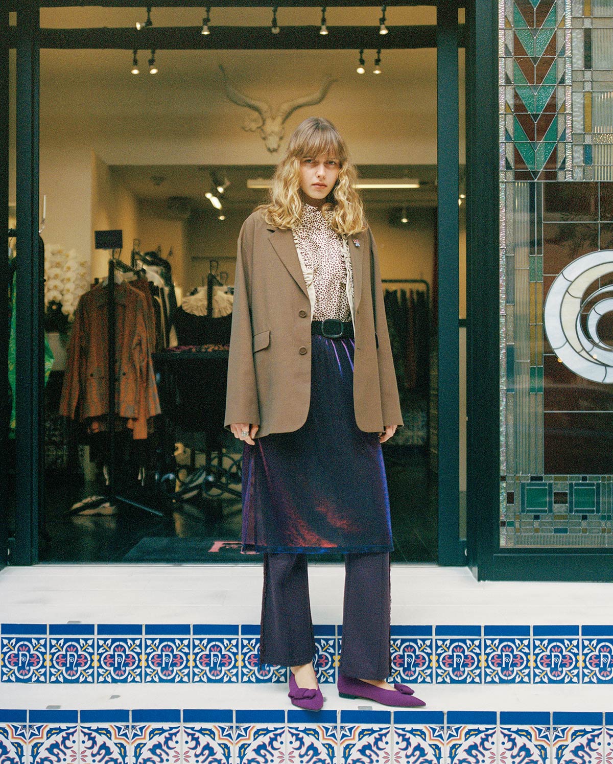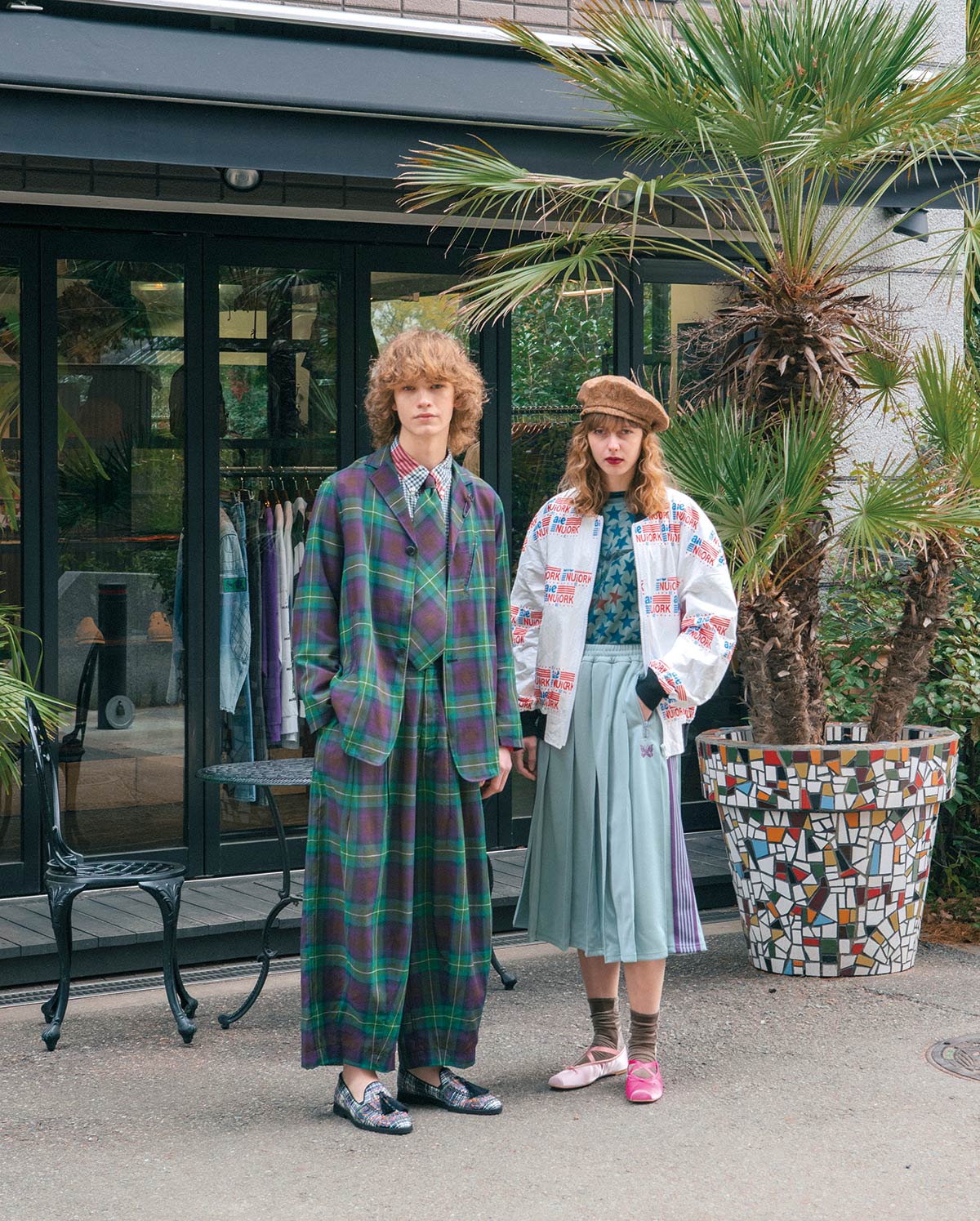 〈RHODOLIRION〉Frill Vest ¥46,200〈RHODOLIRION〉2B Frill Blouse ¥30,800〈RHODOLIRION〉Pencil Skirt ¥19,800〈NEEDLES〉Fringe Boot-Cut Track Pant ¥20,900〈RHODOLIRION〉Ribbon Pointed Toe Pumps ¥35,200