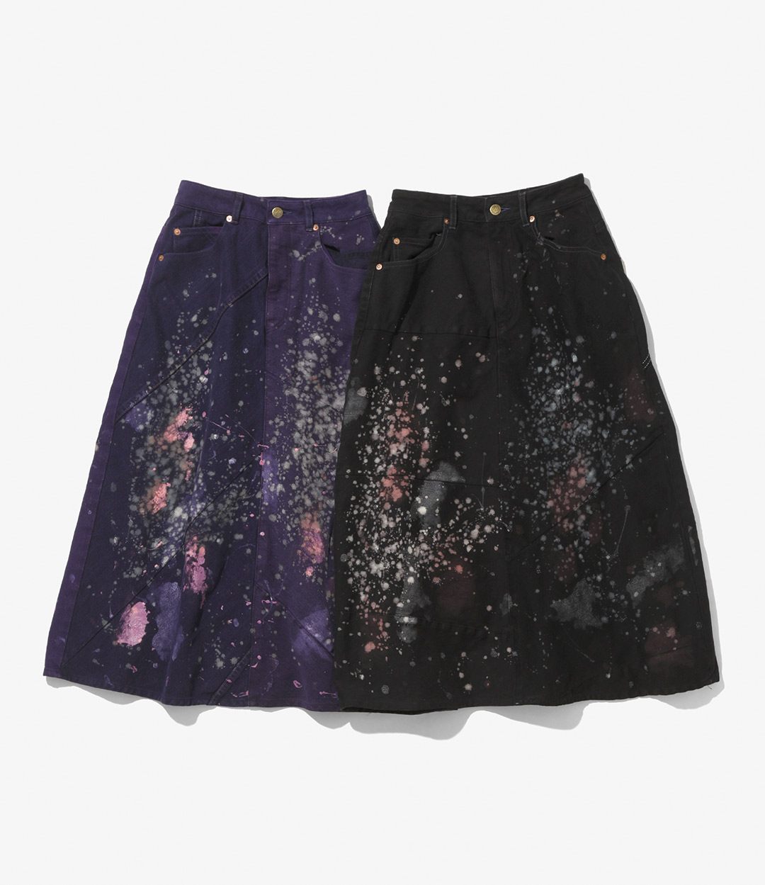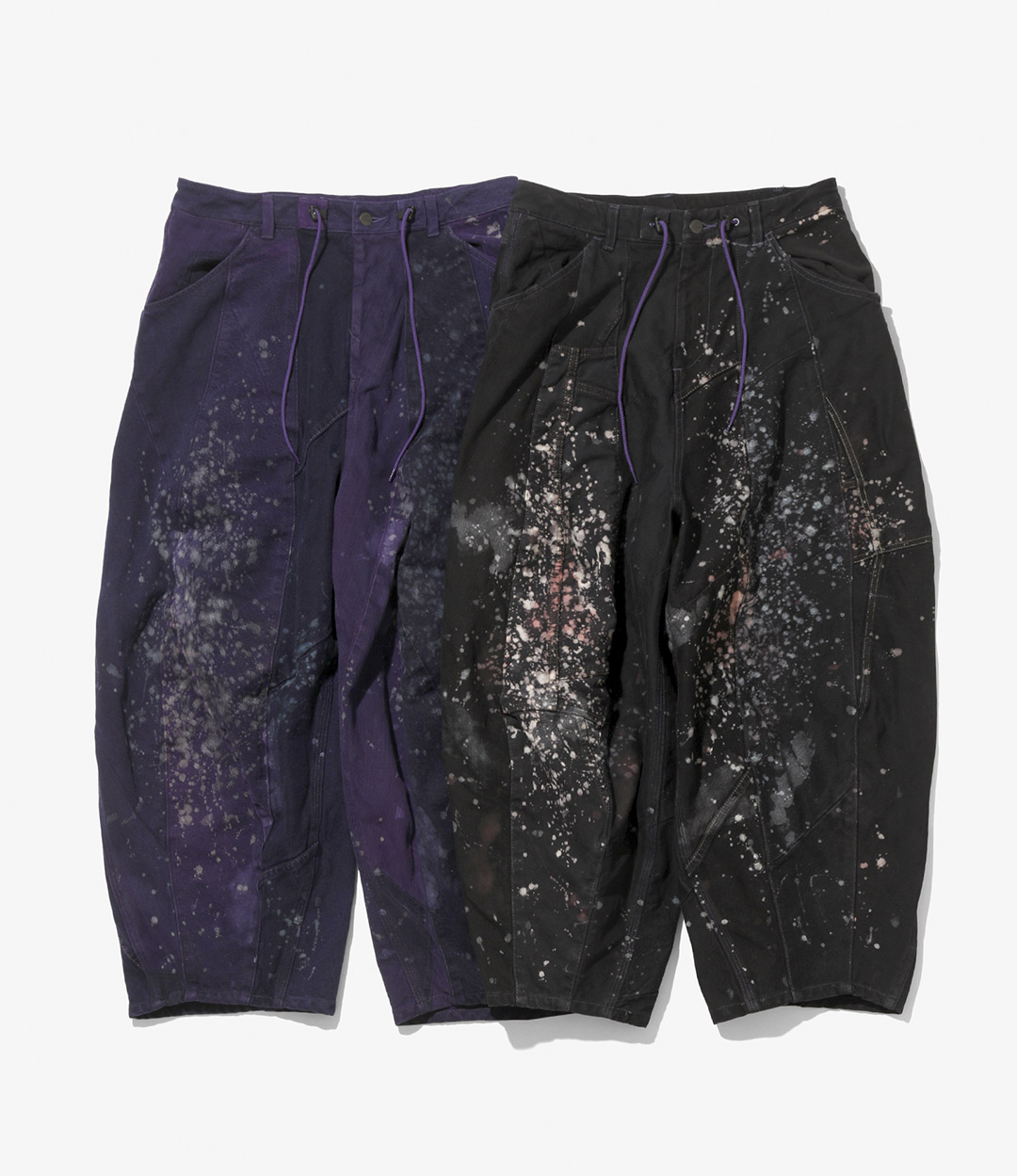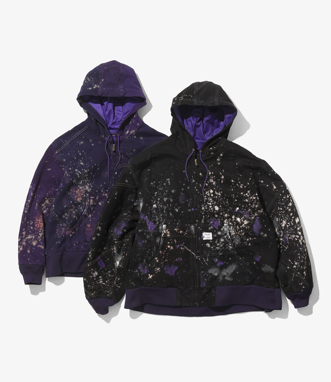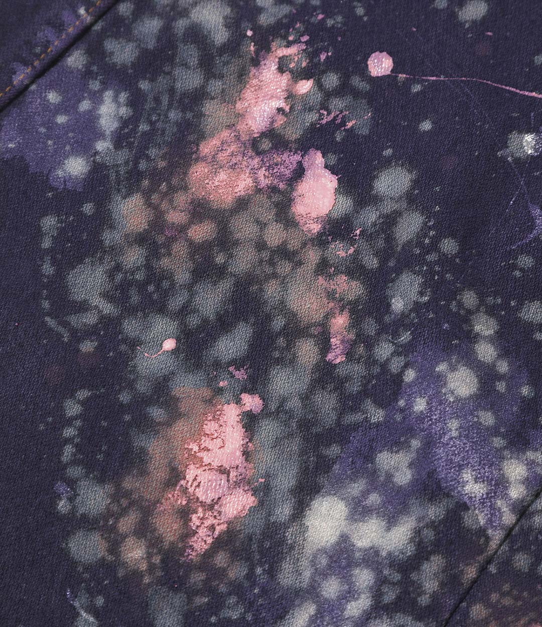 〈REBUILD by NEEDLES〉 からはユーズドデニムを再構築した4種類のアイテムをベースに、 パープルとピンクのハンドペイント、 さらに後染めとブリーチを施したスペシャル仕様のプロダクト。 高度な加工技術で表現された1点ずつ異なる素材感が魅力のコレクション。