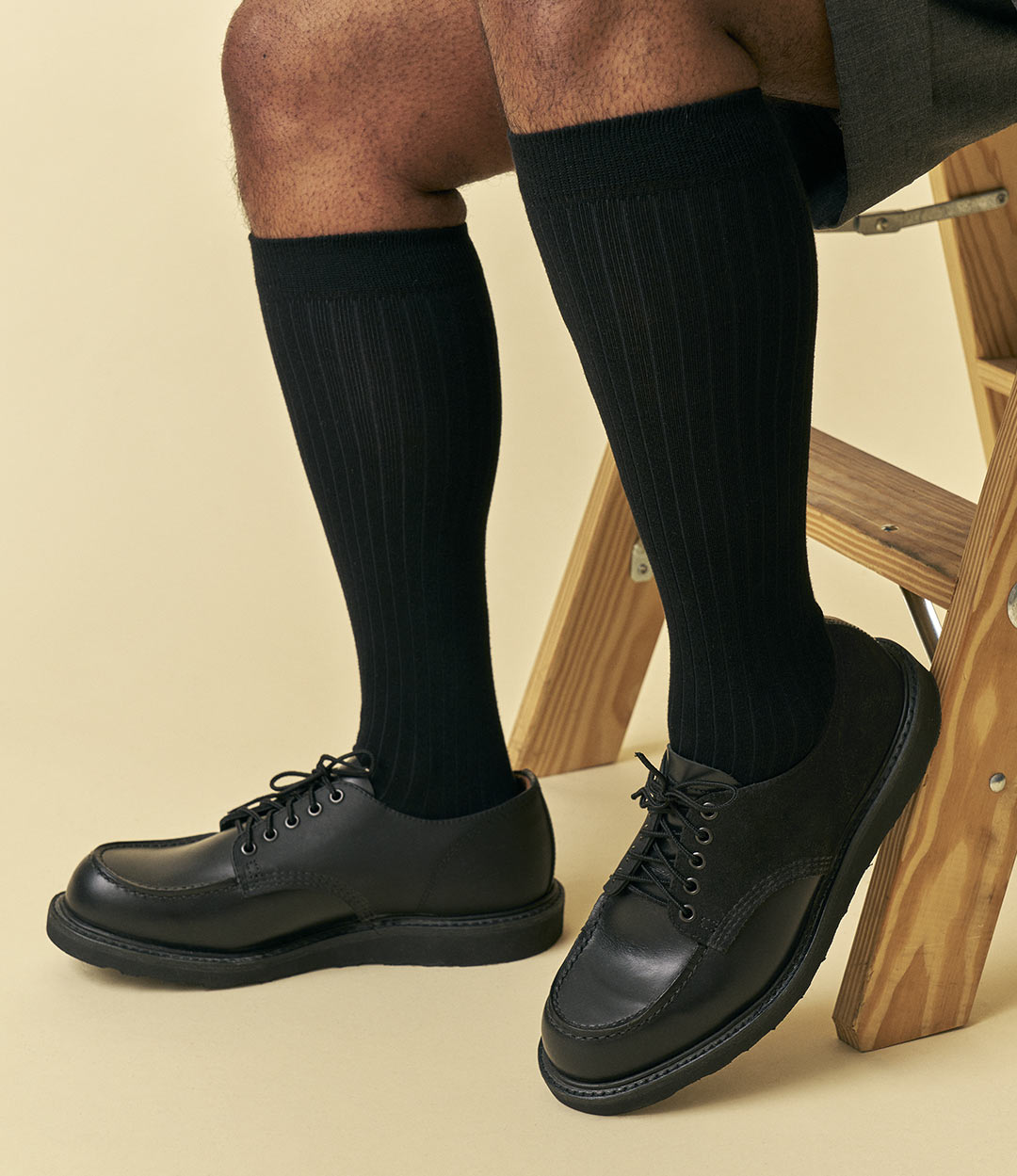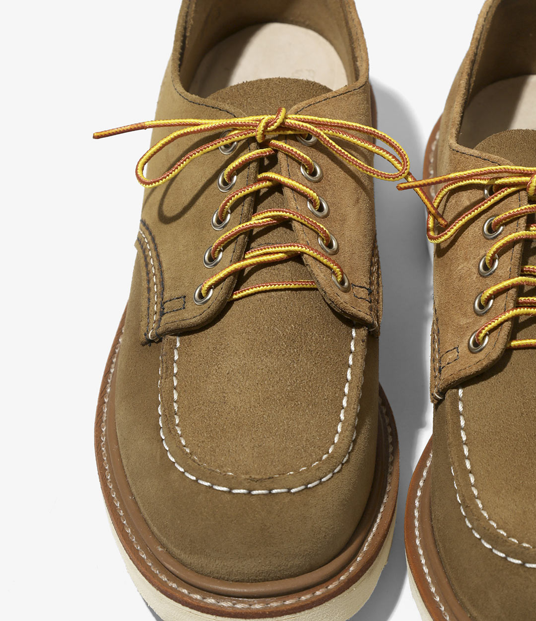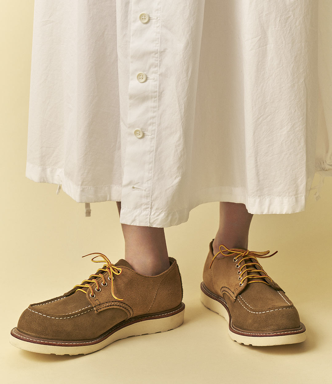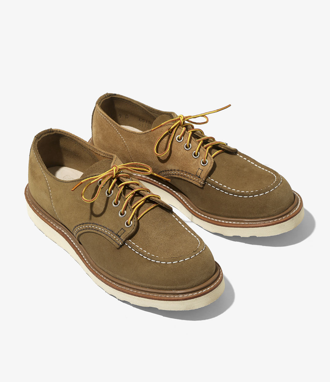 〈RED WING〉 を代表する 「IRISH SETTER」 のオックスフォード型ブーツをベースに、 表情の異なる3種類のレザーを組み合わせて採用したスペシャルモデル 「SHOP MOC OXFORD」。 昨年リリースされた既存のTRIPLE BLACKに加え、 新色としてCOPPER REMIXとCAMEL REMIXが登場しました。