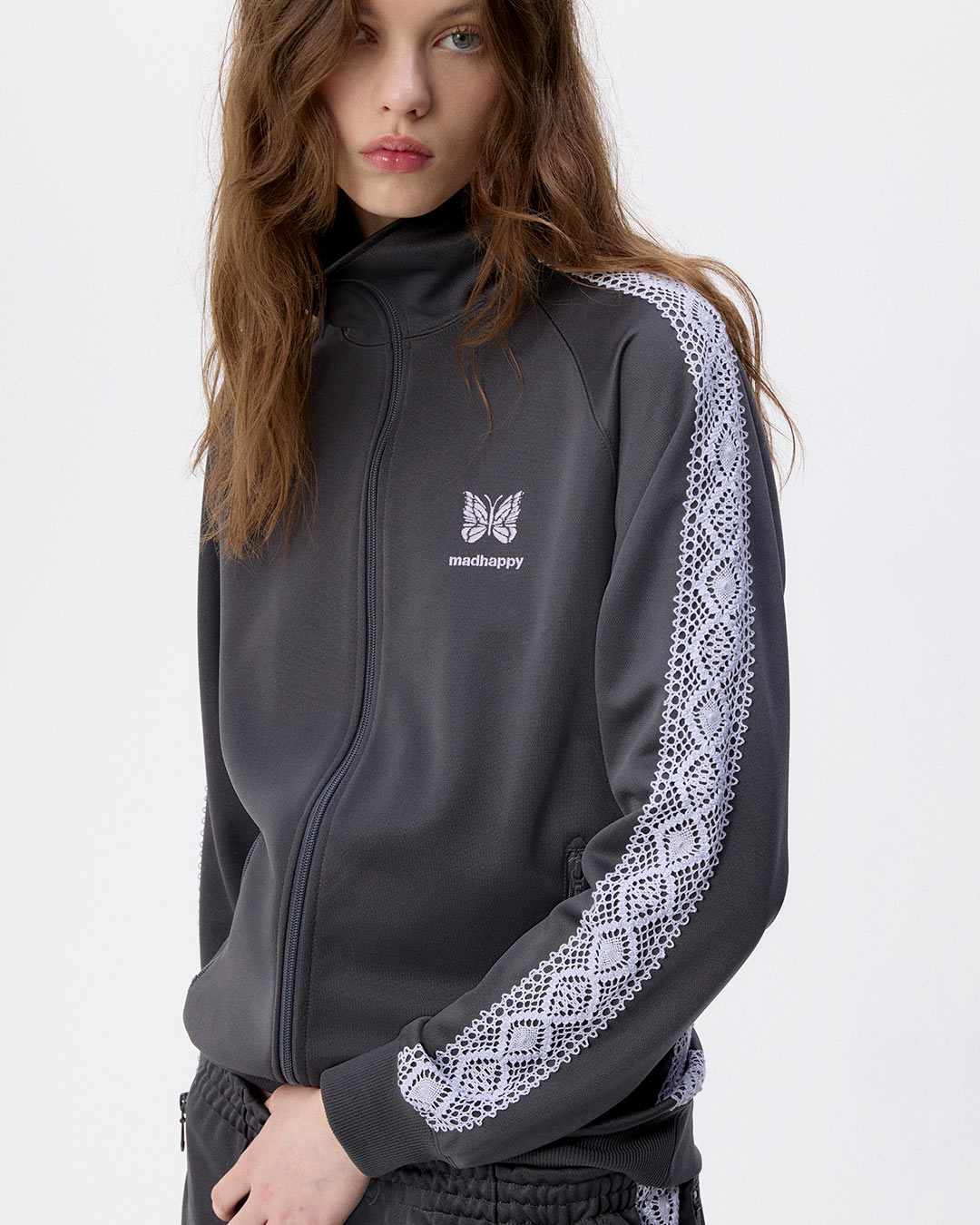 本コレクションでは、 〈NEEDLES〉 の定番アイテムである 「TRACK JACKET」 と 「TRACK PANT」 にレーストリムを施したスペシャル仕様をはじめ、 ブランドを象徴するパピヨンモチーフが際立つ 「PAPILLON EARRINGS」、 さらに 〈madhappy〉 のオリジナルボディを用いて 〈REBUILD BY NEEDLES〉 の手法で再構築されたフーディーやオーバーダイを施したシャツなど、 豊富なバリエーションで展開します。