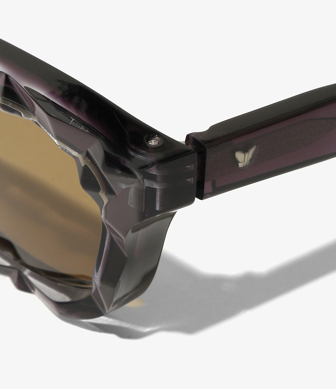 “THE FUTURES EYEWEAR’’ というコンセプトをかかげ、 3Dモデリング (三次元造形) を駆使して立体的なプラスチックフレームを製造する 〈FACTORY900〉。 今回のコラボレーションでは、 左右非対称でランダムに配置させたダイヤモンドパターンを形成し、 不規則な光の反射や屈折によって美しい輝きを纏う 「RF-064C」 と、 シンプルなラウンド型にメタルのインナーリムを取り入れた 「RF-170」 の2モデルがラインナップ。