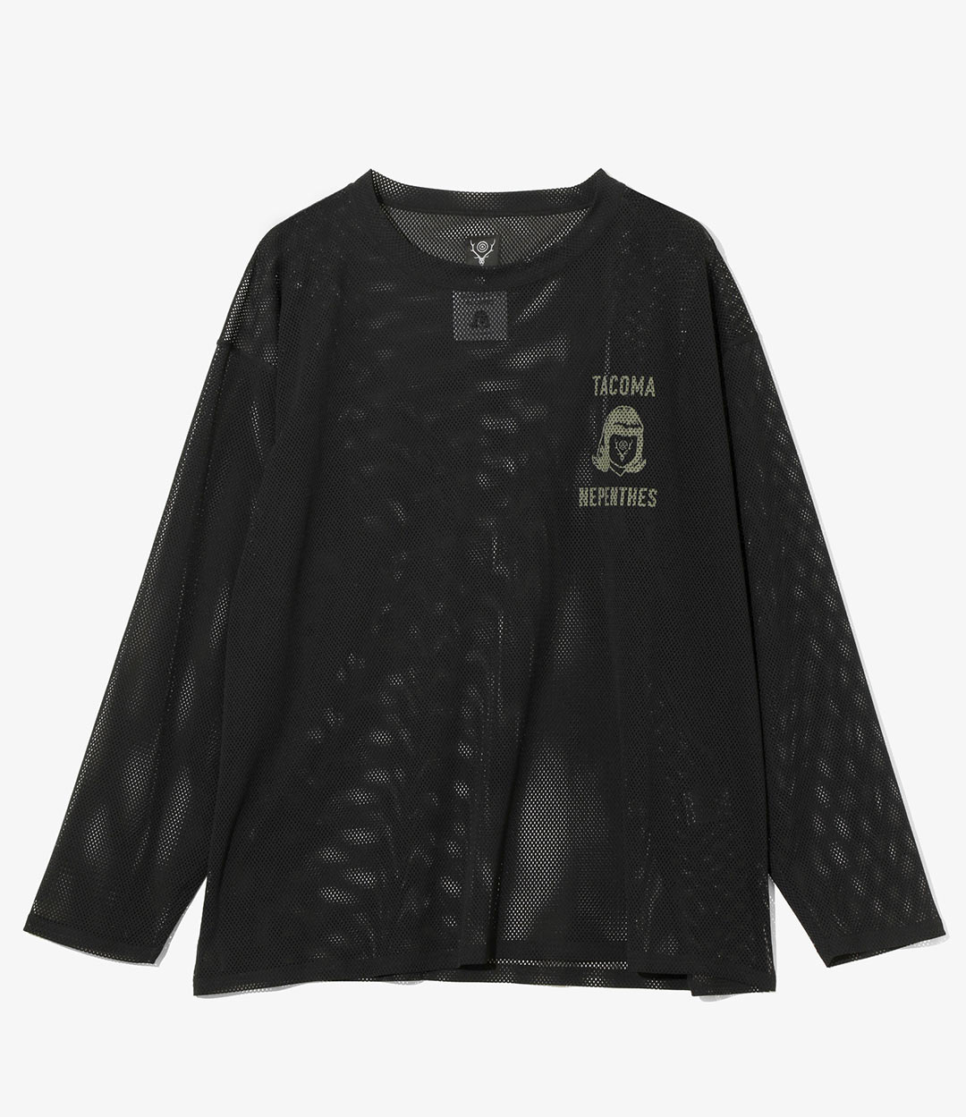 期間中は、 〈TACOMA FUJI RECORDS〉 と 〈NEPENTHES〉、 〈SOUTH2 WEST8〉 各ブランドのロゴを融合させたグラフィックを用いたスペシャルアイテムをはじめ、 多彩な限定Tシャツを展開します。 胸元にロゴをあしらったメッシュ素材の定番レイヤードアイテム 「L/S CREW NECK SHIRT」 や、 初登場となる半袖仕様の 「S/S CREW NECK SHIRT」、 〈NEPENTHES〉 と 〈TACOMA FUJI RECORDS〉 両ブランドのロゴを大胆に組み合わせた 「PRINTED TEE – LOGO」、 さらに過去のアーカイブや定番デザインをBLACK×PURPLEのカラーリングで別注したTシャツなど、 全6型がラインナップ。