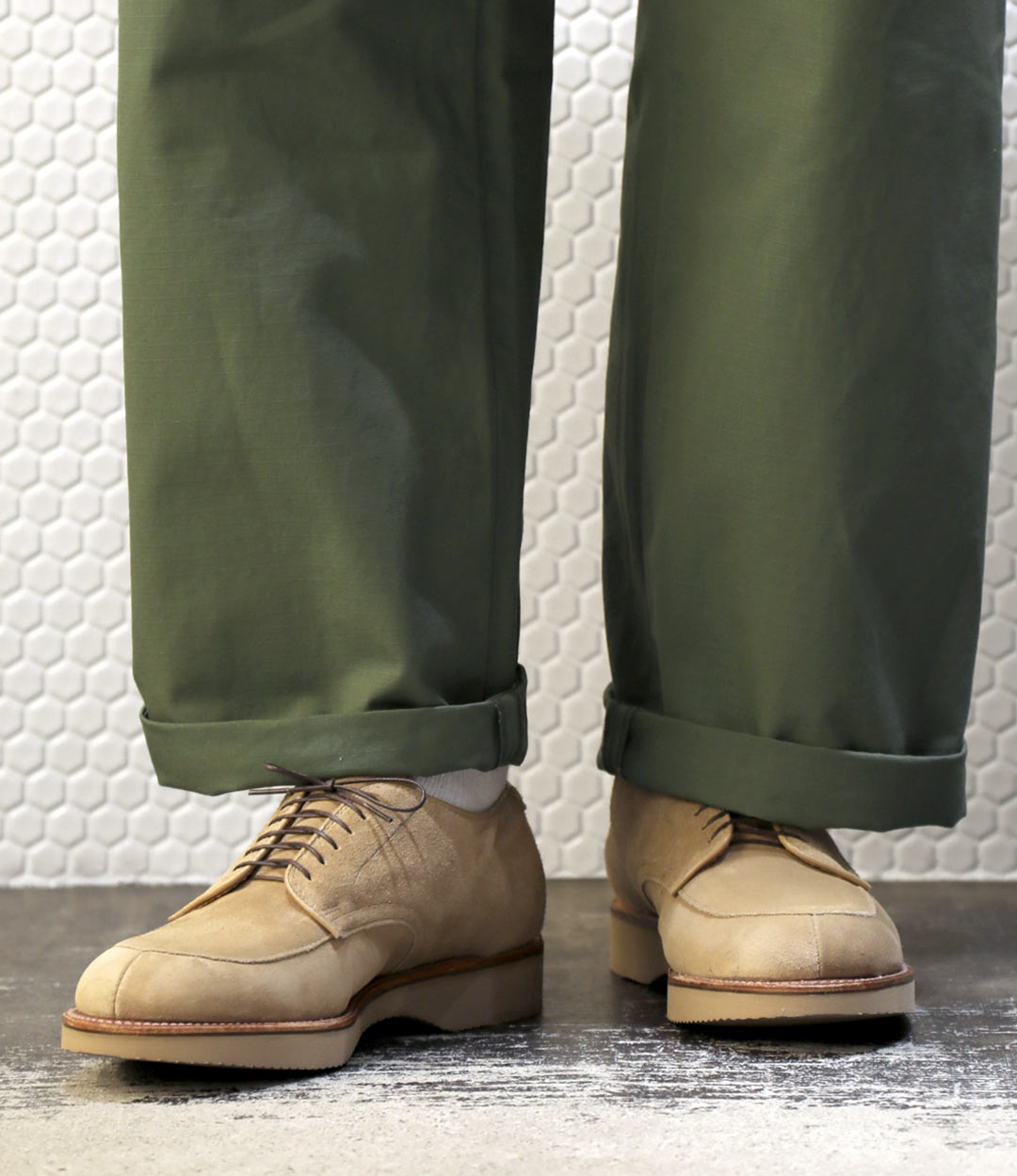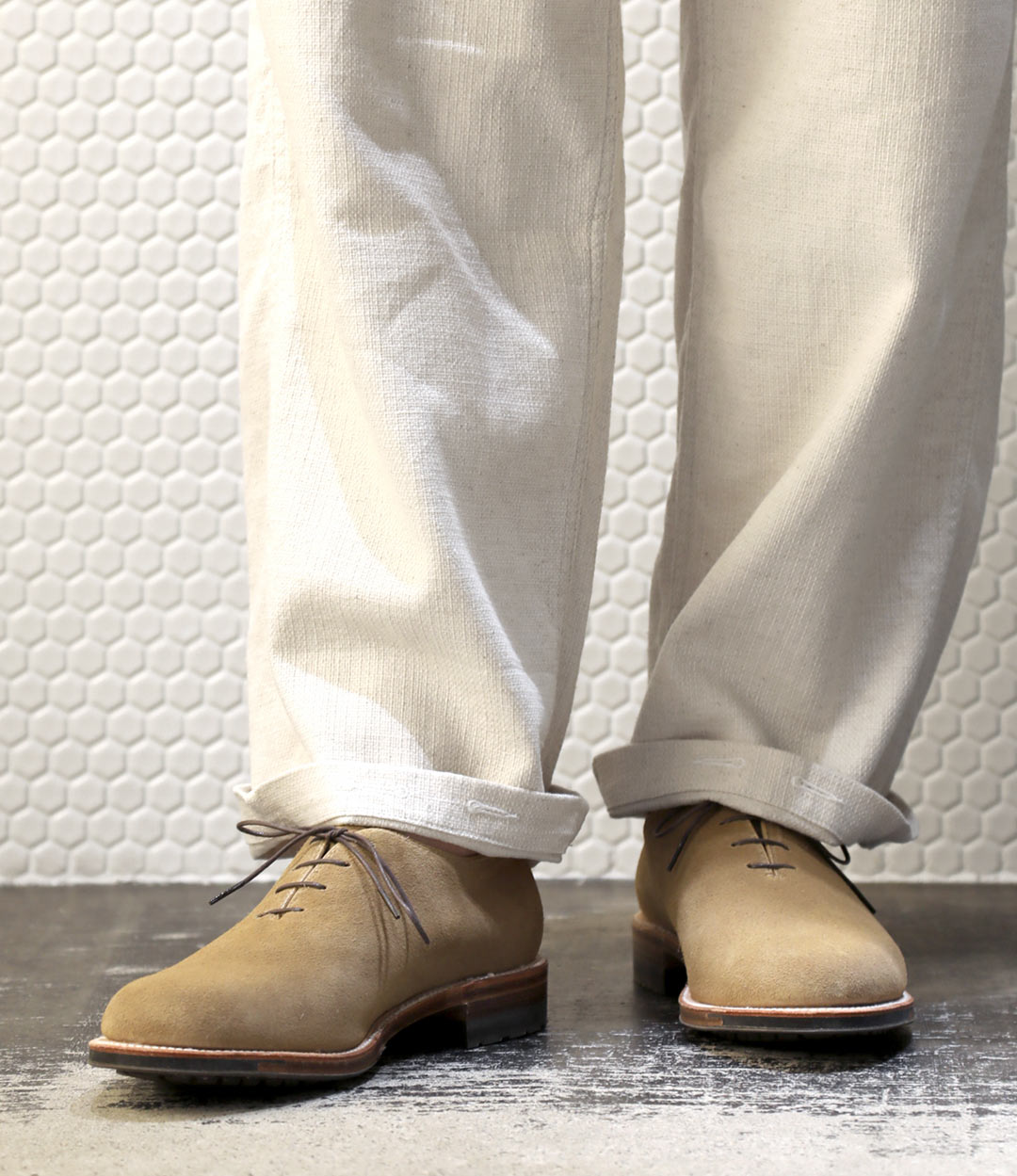 アッパーには、 ホーウィン社製のクロムエクセルレザーをはじめ、 カーフレザーや撥水性・防汚性を備えたスエードなど、 いずれも高品質なレザーのみを厳選。 クラシカルなドレスシューズの要素と、 タフな機能性を兼ね備え、 さまざまなシーンで活躍する一足に仕上がっています。 ぜひご注目ください。
