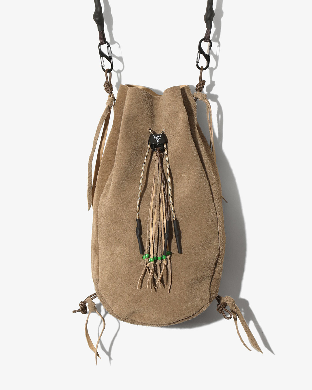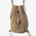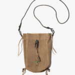 〈B:TOGETHER〉のコレクションでも高い人気を誇る ”KINCHAKU” のシリーズから、牛革をラムレザーのようにしなやかで柔らかい質感に仕上げた ”ラムライク” 調のレザーをセレクト。開閉するスライダーパーツには〈SOUTH2 WEST8〉のスカルマーク、フロントにはビーズを使ったフリンジを装飾しメディスンバッグのようなネイティブ感の溢れる仕上げになっております。また、上下4箇所にはカラビナを通すループが付属されており、カラビナの付け位置によって様々なアレンジで持ち方を変える事が可能。BEIGE SUEDEとBLACK SMOOTHの2色展開となっております。