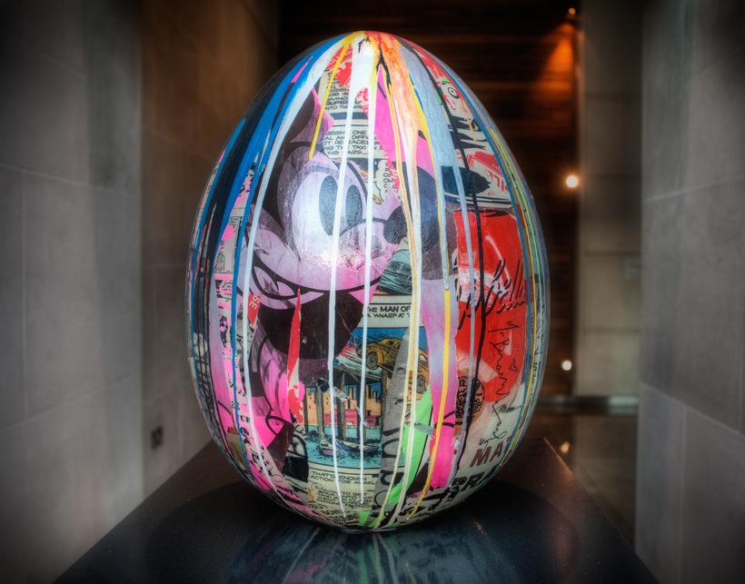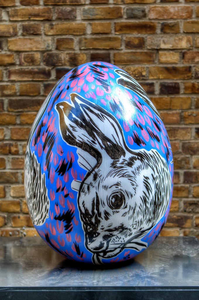 車で走っている途中に、どこかの建物の壁の上にそっとあったり。待ち合わせ場所やミーティングにいく途中に道の横に何気に卵があったり。探さなくてもあちこちで見かけくらいたくさんあります。ちなみにその卵は、ちゃんと地面にくっついててケースに入ってるものもあったりと、盗まれないようになってます。200個の内の、ほんの一部だけを写真で紹介しておきましょう。たくさんのアーティストが参加しているので、アートコレクターの方は是非ウェブサイトをチェックしてみて下さい。