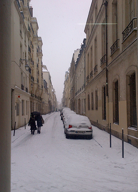 パリでは3日間雪が降り続いたけど、それでもメトロはちゃんと通常通り動いているし、タクシーも数は少ないけどちゃんとつかまるし、ロンドンではあり得ないくらい不自由はなく仕事もできました。しかし、やはり飛行機や電車での移動は多少支障はあったようで、パリ入りすることができないバイヤーさんたちもいた様子。展示会などの会場も通常よりも静かだったそうで、これはとっても残念なこと。私はショールームでの仕事だったので、暖かい部屋から見える雪を眺めるばかりでしたが、あの悪天候のなかショーや展示会場をまわっていたバイヤーさんは本当に凄いと思います。