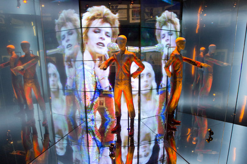 エキシビションの内容はかなり充実していました。たくさんの部屋があり、展示品もびっしり。じっくりと見ながら歩いていたら、なんと所要時間2時間半。そしてさらに影響されやすい私は、エキシビションから出てきた瞬間にすっかりデビットの大ファン。フィナーレの部屋というか空間は天井がとっても高く、その壁全体にスクリーンが張られていて、彼のライブシーンを見ることができるようになっていました。そして、彼がそのライブで着ていた衣装がスクリーンの後ろから照らし出されるようになっていて、とっても感動的でした。辺りをみると、一緒に歌ってる人もいれば、昔は凄いファンだったんだろうなというような、おじさまおばさまが昔を思い出すように、スクリーンに映るデビットを眺めている。そんな人たちをみていると、改めてデビッドが世界中に与えた影響はすごかったんだろうなと実感。