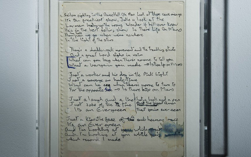 デビッドはミュージシャンというよりも、アーティスト。彼のスケッチや手書きのメモがたくさん展示してあったのですが、彼の歌はもちろん、レコードのジャケット、ステージの構成、ライブの構成、衣装などすべて100%デビットから生まれた世界だったのです。説明がきにも彼がどれだけ勉強家で、彼の世界を繰り広げるために、かなりの本を読んで色んなことについて勉強したそうです。