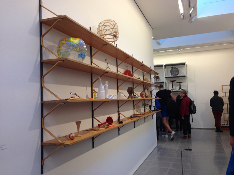 このエキシビションはその「棚」に、アーティストの私物を並べることによって、彼らの世界観を紹介するというもの。棚は30年代の古いものから、もちろんマティーノの棚、他にも彼が尊敬するデザイナーの棚、IKEAの棚など可愛い棚がギャラリーの壁にいっぱい並んでいます。