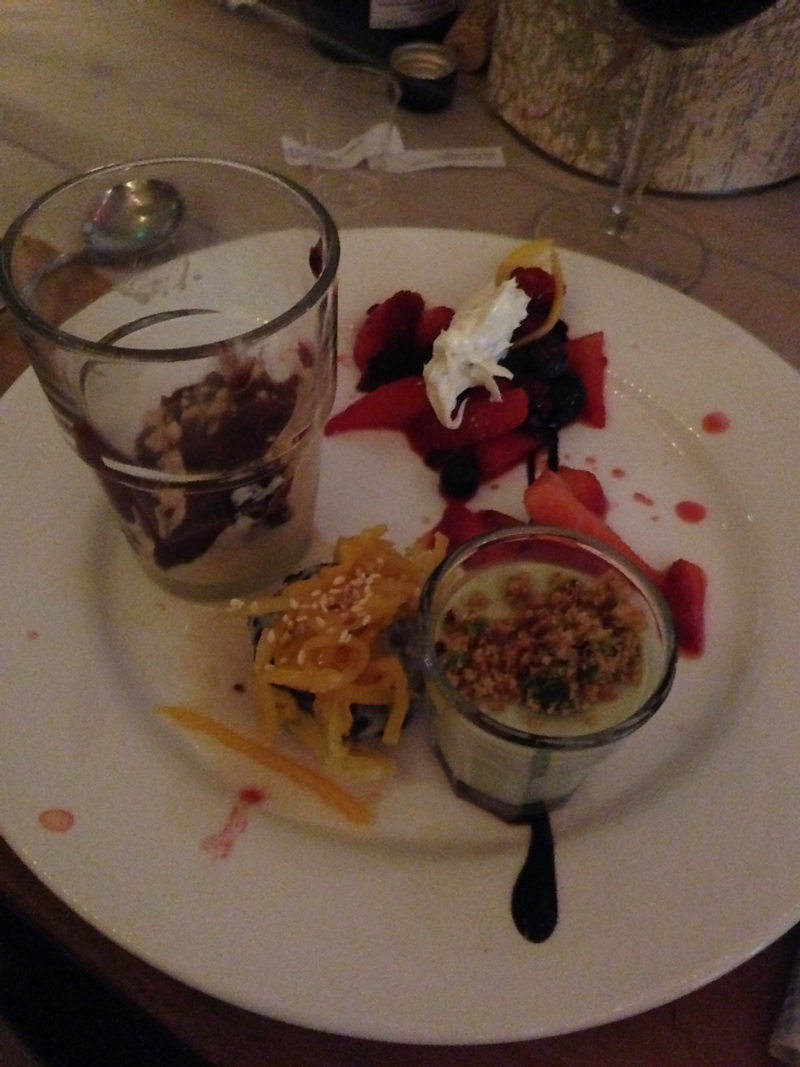 今回このイベントではマーリーがたくさんの世界各国のお料理を作ってくれました。日本代表はお味噌汁と唐揚げ!何種類のスターターが出てきたかはっきり覚えないけど、数知れない世界各国のスターターの後は、私はモロッコのタジンをメインにして、最後の世界のデザート4種類盛りもペロッと頂きました。とってもとっても美味しかったです。ごっちそうさまでしたマーリー!