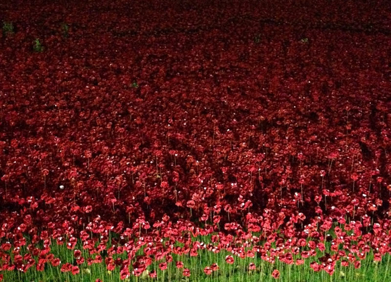 これらのポピーは一本25ポンドで購入する事ができ、もちろんその売り上げもすべてチャリティーに寄付されます。インスタレーション後に一本一本撤去され、購入した人たちへの配送準備が始まり、いくつかのポピーは戦争博物館に展示されるそうです。