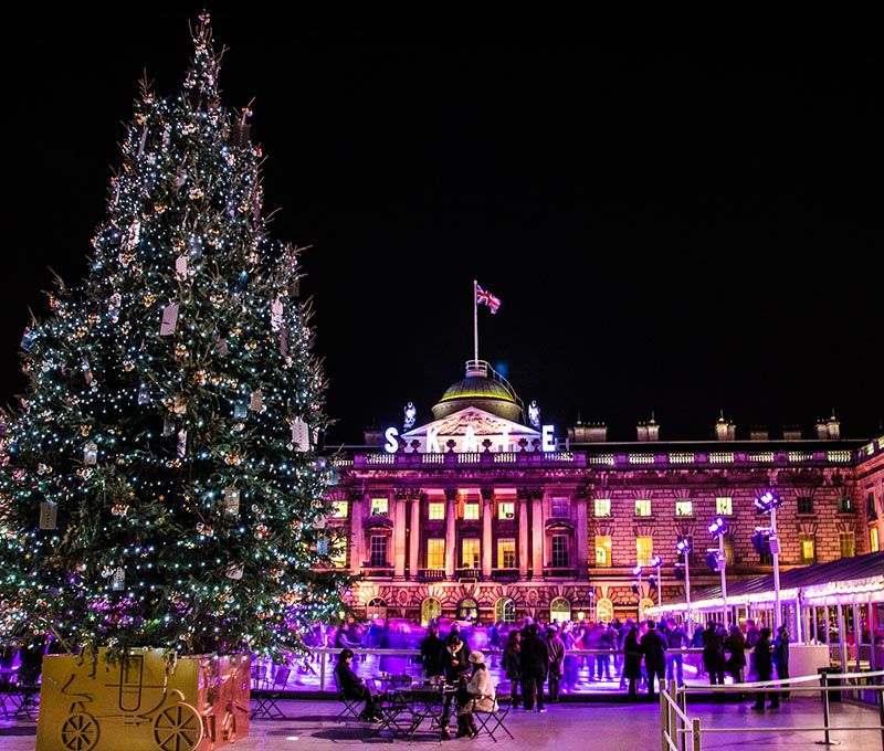 サマセットハウスでは、フォートナム&メイソンが主催するアイススケートリンクが毎年クリスマスの時期にオープンします。クリスの写真を見た後外にでたら、目の前に大きなクリスマスツリーとスケートリンクがあって、気分はもうセントラルパークにいるようでした。あーニューヨークに行きたい。