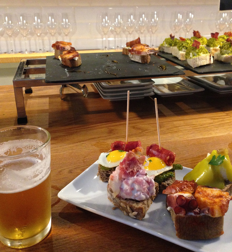 ある意味お腹はいっぱいになったけど、本当のお腹はペコペコだったので、初のピンチョス。旅行前にどこのピンチョスが美味しいかいろいろ調べていったけど、街を歩いていくつかのバルを覗いてみるとどこも美味しそう。どのバルにするか迷い、そして中に入って座ると、目の前にずらーーっと並ぶピンチョスをみてどれを食べるかまた迷わされ、やっと決めたのがこの子達。