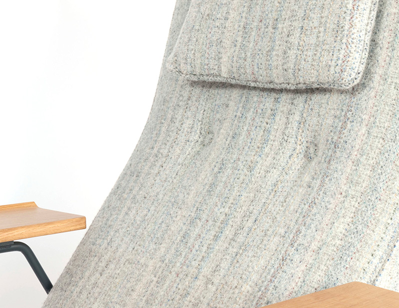 マティーノはイギリスで活躍するイタリア人デザイナー。テーマは"A British wool, a British weaver, a great British designer’s chair - and a little bit of Italian thrown into the mix." ということで彼は素晴らしいイギリスの椅子だけに、イギリスのウールでイギリス人の手で織られた生地をアップホリスターに選んだそうです。