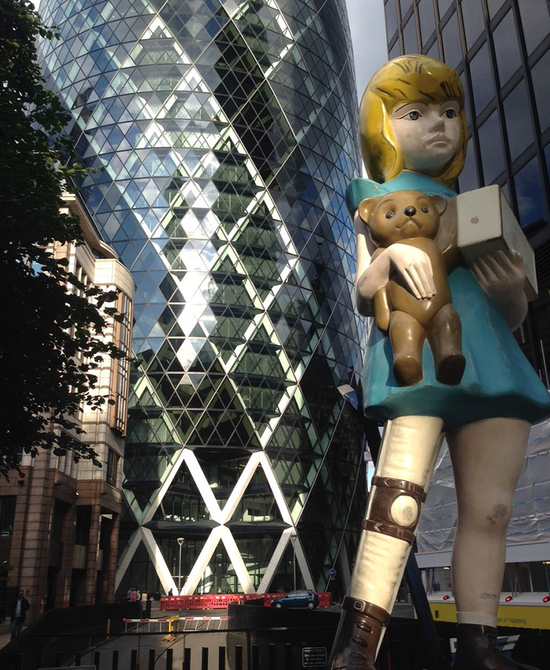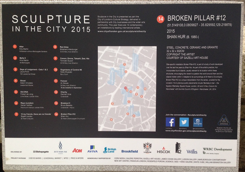 ダミアンから少し歩いて、ガーキンビルの真横に鈴木友昌(すずき・ともあき)さんの作品が並んでました。デミアンに比べるとかなり小さい。ただ説明書きで
