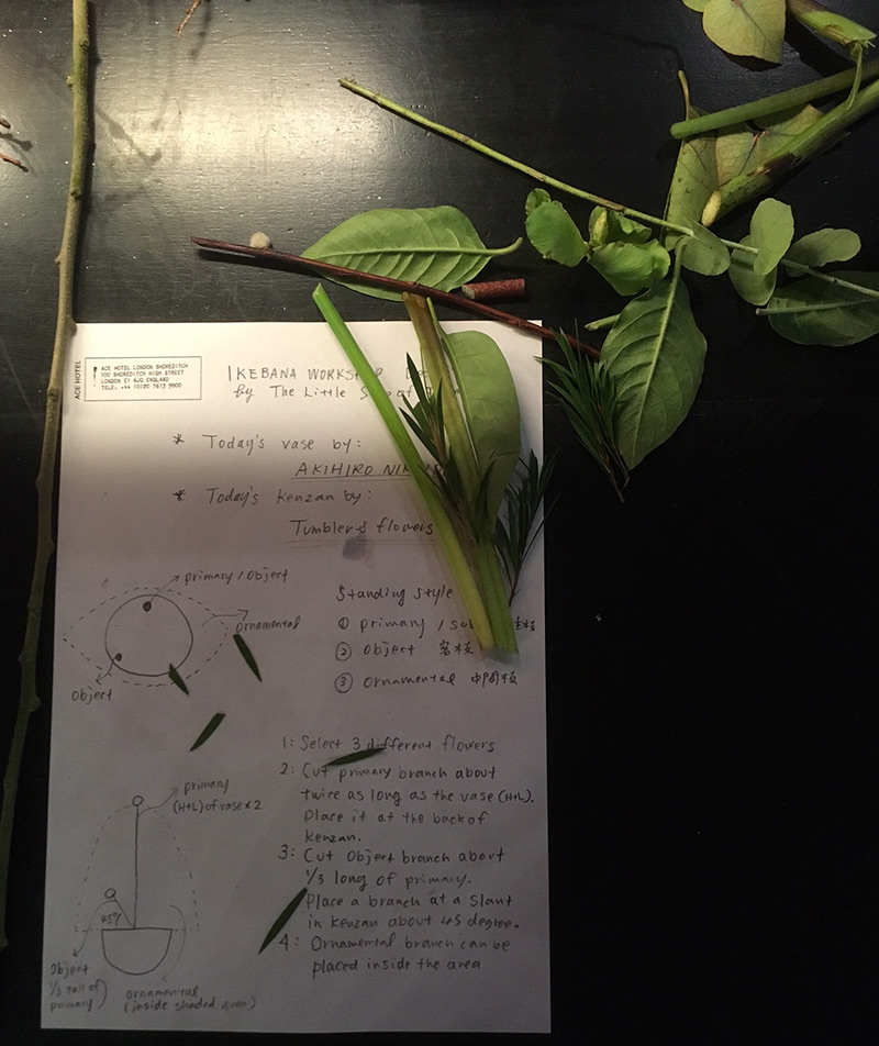 東京の「The little shop of flowers」よりフローリストの壱岐ゆかり先生が遥々日本から来られ、2日間Ace Hotelで生花ワークショップを開かれました。日本国外で生花の魅力をいろんな人に伝えたいという先生の思いで、今回は初めてロンドンでのワークショップ。ロンドンの前にはLAでもワークショップを開かれたそうです。