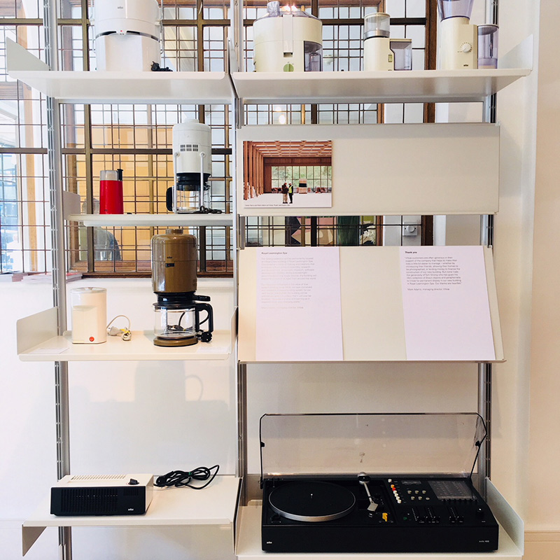 トムさん現在77歳。今まで住んでいたロンドン市内のお家から郊外の少し小さめのお家に引越しが決まり、場所的にも年齢的にも全ての商品を管理、保管することが大変になってしまうため、この子達の行き先を探していました。ある日、新しいお家にVisoeの椅子の購入を考えていたので、ニューヨークのショップに行きました。その時に自分のブラウン商品のコレクションの話をニューヨークのスタッフにしたそうです。もともとVitsoe社では、デザインを学びたいという若者達のために何かをしたい、という考えがあったそうで、このコレクションがまさにその答えなのではないか?とトムさんと意気投合。結果、Vitsoeが責任を持って商品の管理、保管、そして展示することを約束。たくさんの学生達に学習の機会を与えるという事を条件に、トムさんは全ての商品を無償で寄付したそうです。なんて、なんて素晴らしいお話なんでしょう。トムさんありがとう。私も勉強になりました。