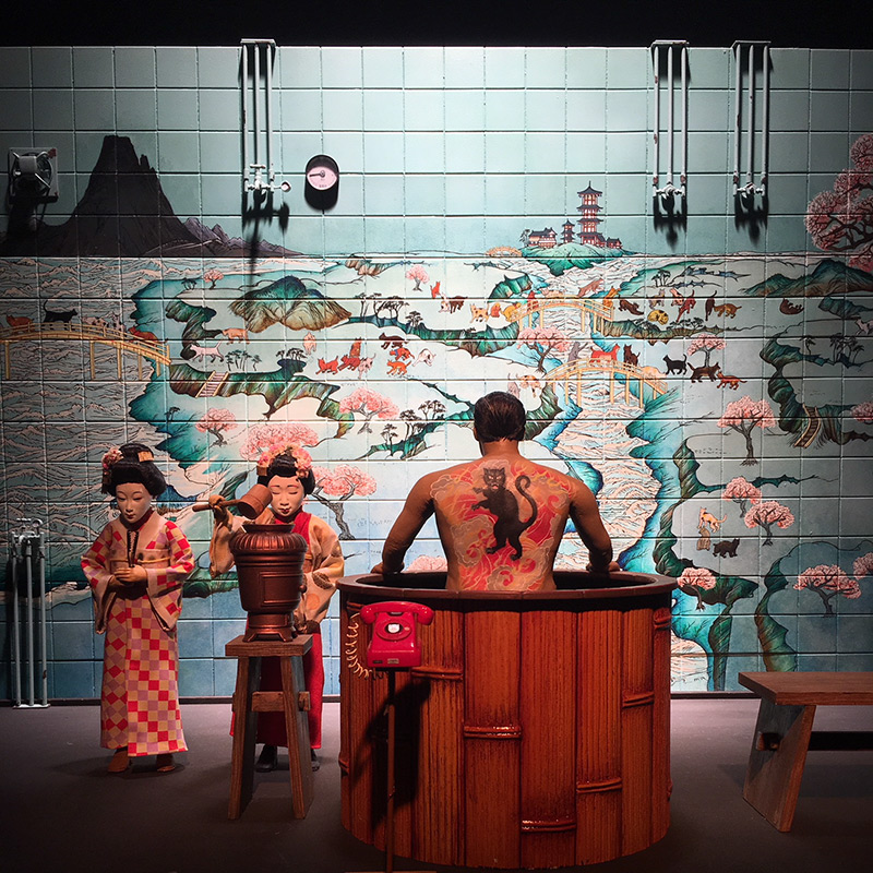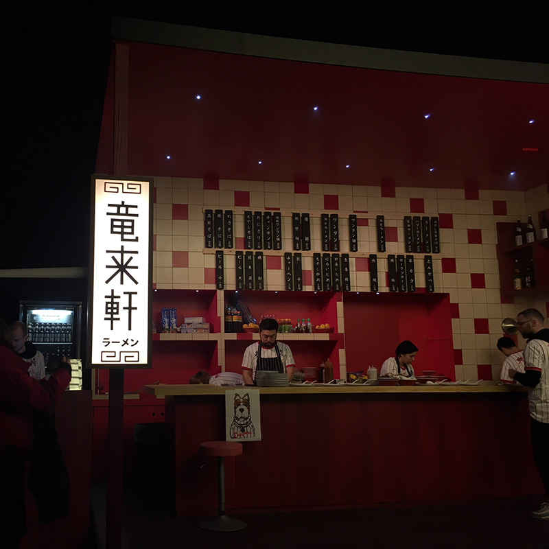 映画はロンドンで撮影されたので、映画公開記念で使用されたセットがエキシビジョンで展示されました。映画に出てくる街並みとラーメン屋も再現され、ロンドンのレストランENGAWAによるラーメンも食べられてとっても素敵なエキシビジョンでした。