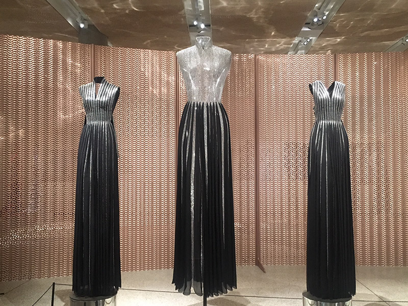 ショーケースに入っていないのにはびっくりしましたが、それによってラッキーなことに細かいところまでじーっくり観察できたことがたまらない。素材の使い方、組み合わせ、色の組み合わせ、縫製、女性を1000%引き立たせるカット。何もかもがグッーーーと来たーーー!こんなに感動したエキシビションは久しぶりです。