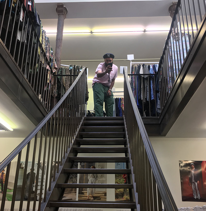今回のショールームスペースは以前より広くなり、普段アートギャラリーとして使われてるこのスペースです。パリにありがちな中庭に建てられたギャラリーで、一階の屋根の半分がガラスルーフになっていて、お天気が良い日は自然光がたくさん入り、とっても素敵なスペースです。